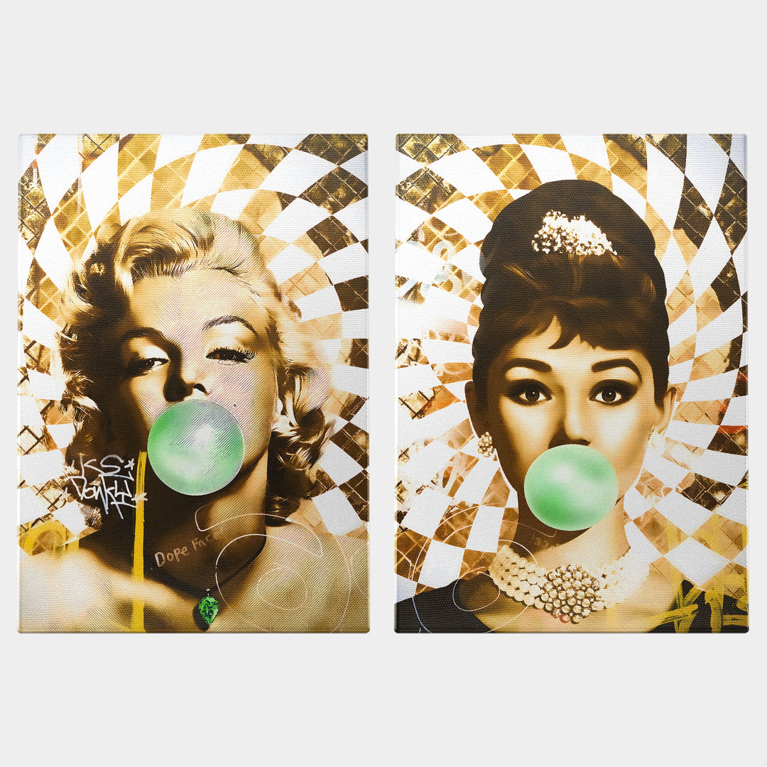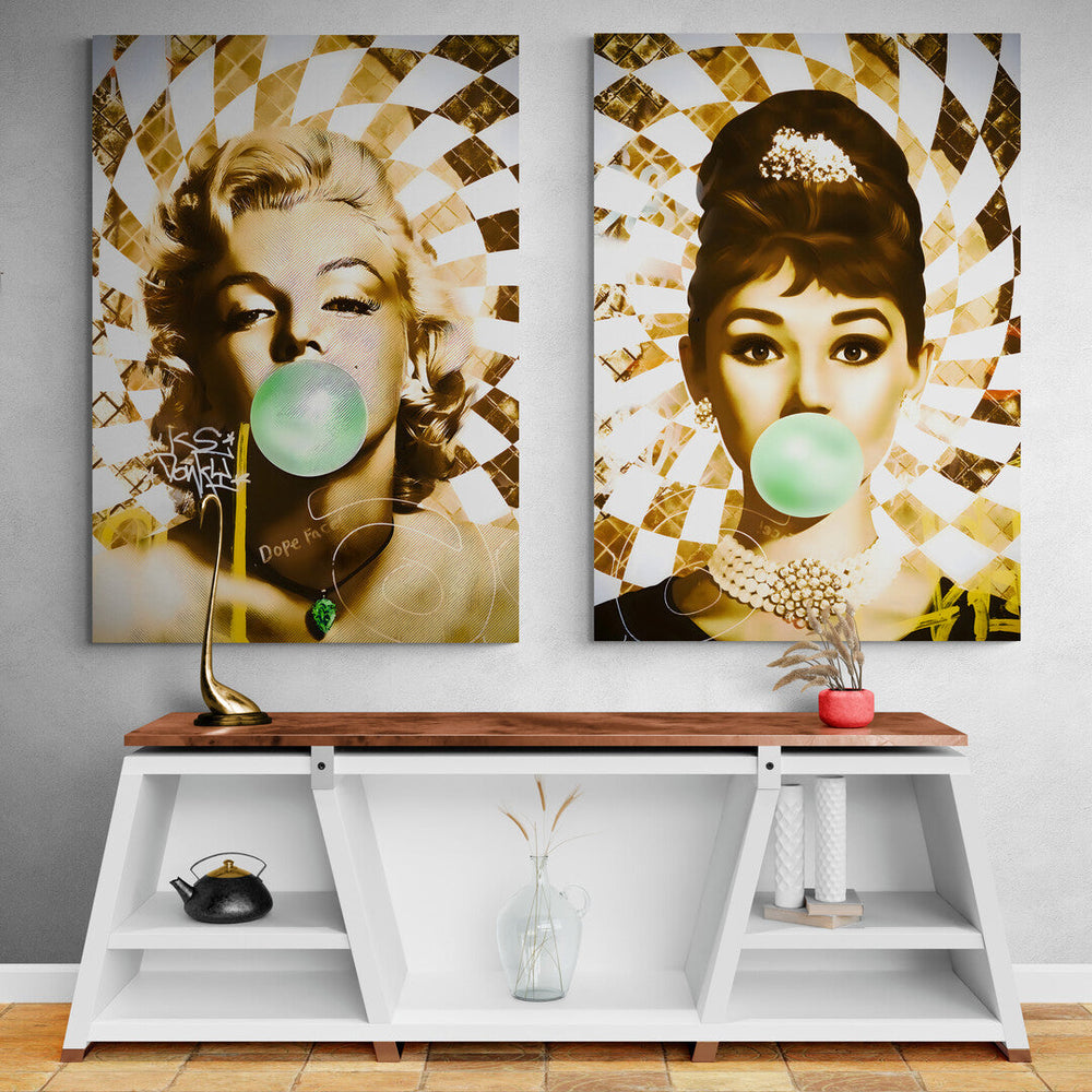 Golden Marilyn Monroe and Audrey Hepburn